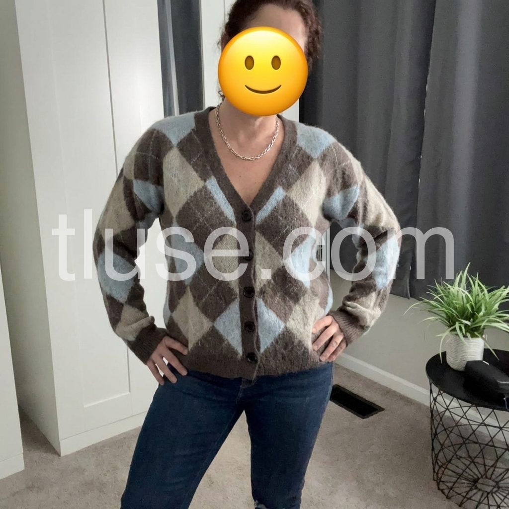 This cardigan features a timeless argyle geometric print in versatile neutral tones, offering a sophisticated layering option. Crafted with a button-front design, it allows easy wear and adjustable styling. Its refined pattern blends classic and contemporary elements, making it an ideal choice for enhancing both casual and polished outfits with subtle texture and depth.