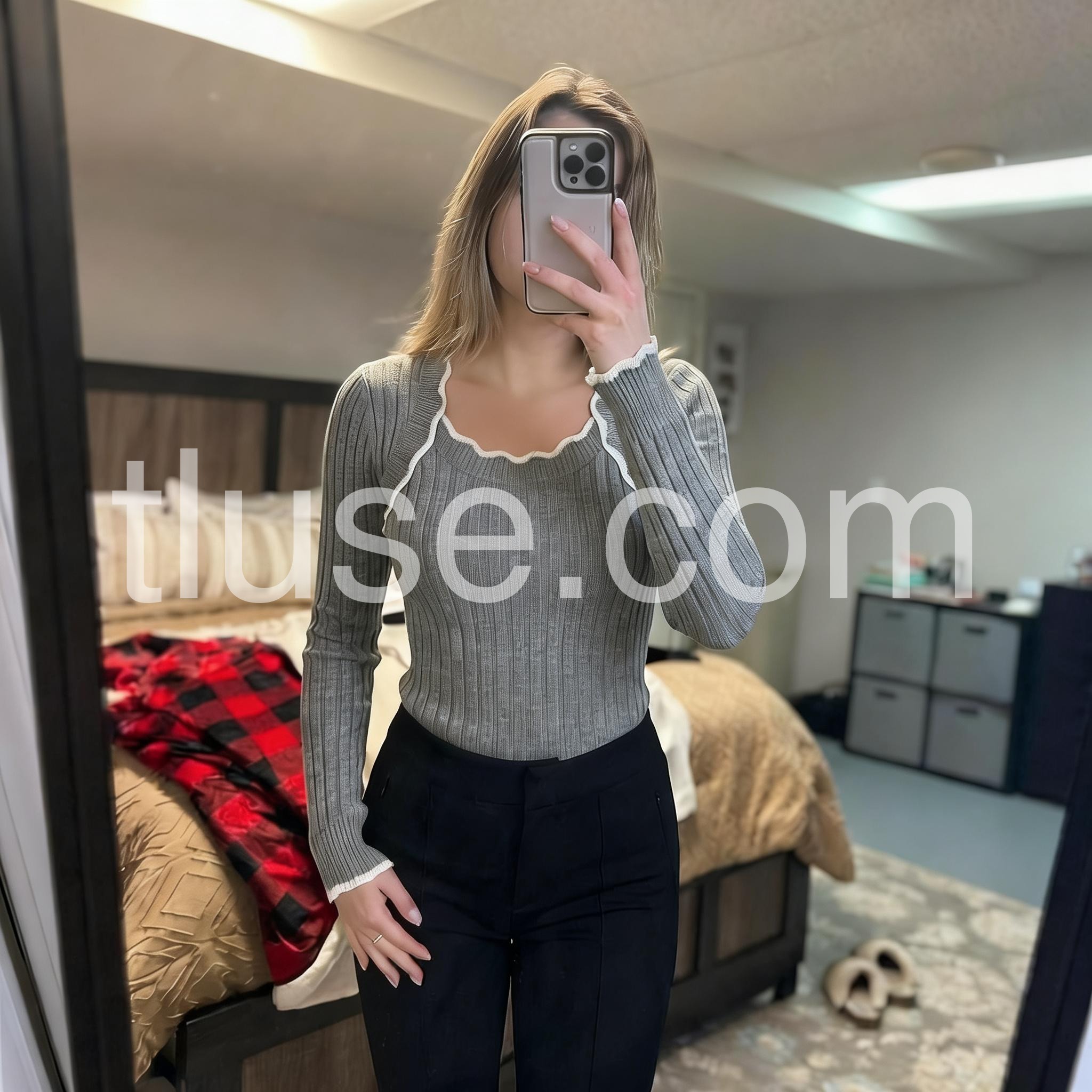 Grey Square Neck Long Sleeve Sweater