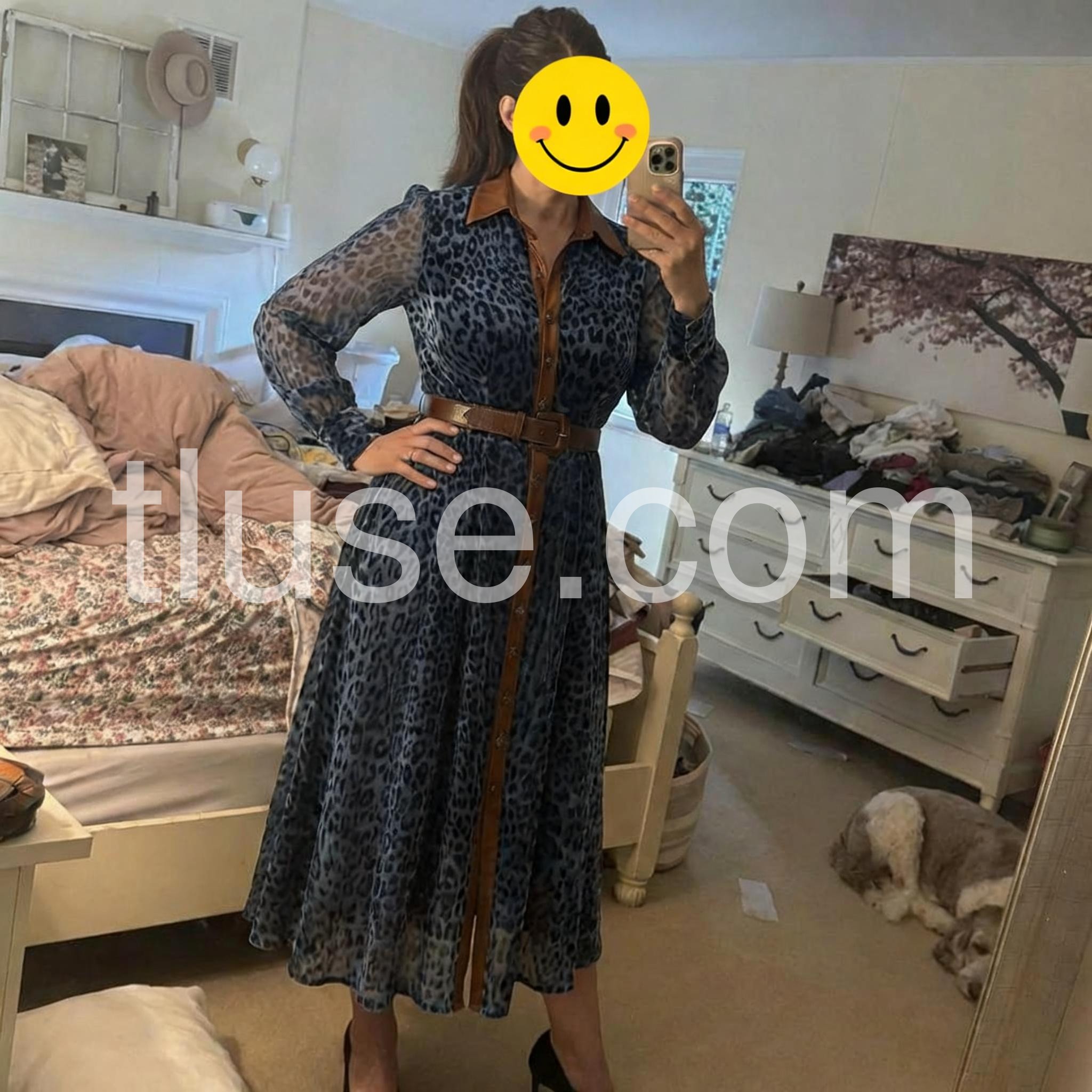 Elevate your wardrobe with this Blue Long Sleeve Leopard Midi Dress, expertly designed to blend bold animal print with a sophisticated silhouette. The long sleeves offer versatility for cooler days, while the midi length ensures a flattering and elegant fit. Crafted to provide both style and comfort, this dress is perfect for making a confident statement at any occasion.