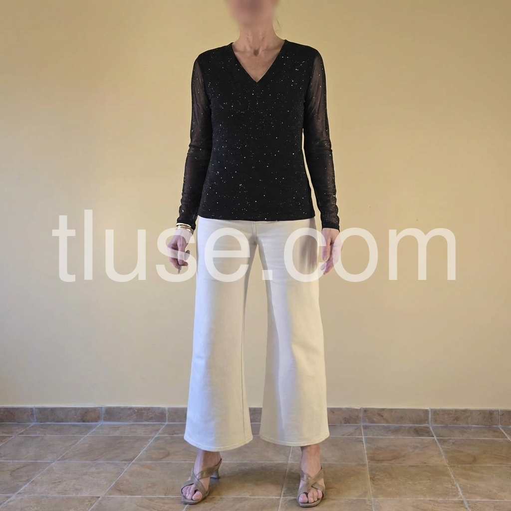 Elevate your wardrobe with this Black Sparkle Sequin V-Neck Long Sleeve Top. Designed with shimmering sequins and a flattering V-neckline, it effortlessly combines sophistication and glamour. The long sleeves provide a balanced silhouette, perfect for evening events or festive occasions. This top delivers both eye-catching style and comfortable wear, making it a versatile choice for any chic ensemble.