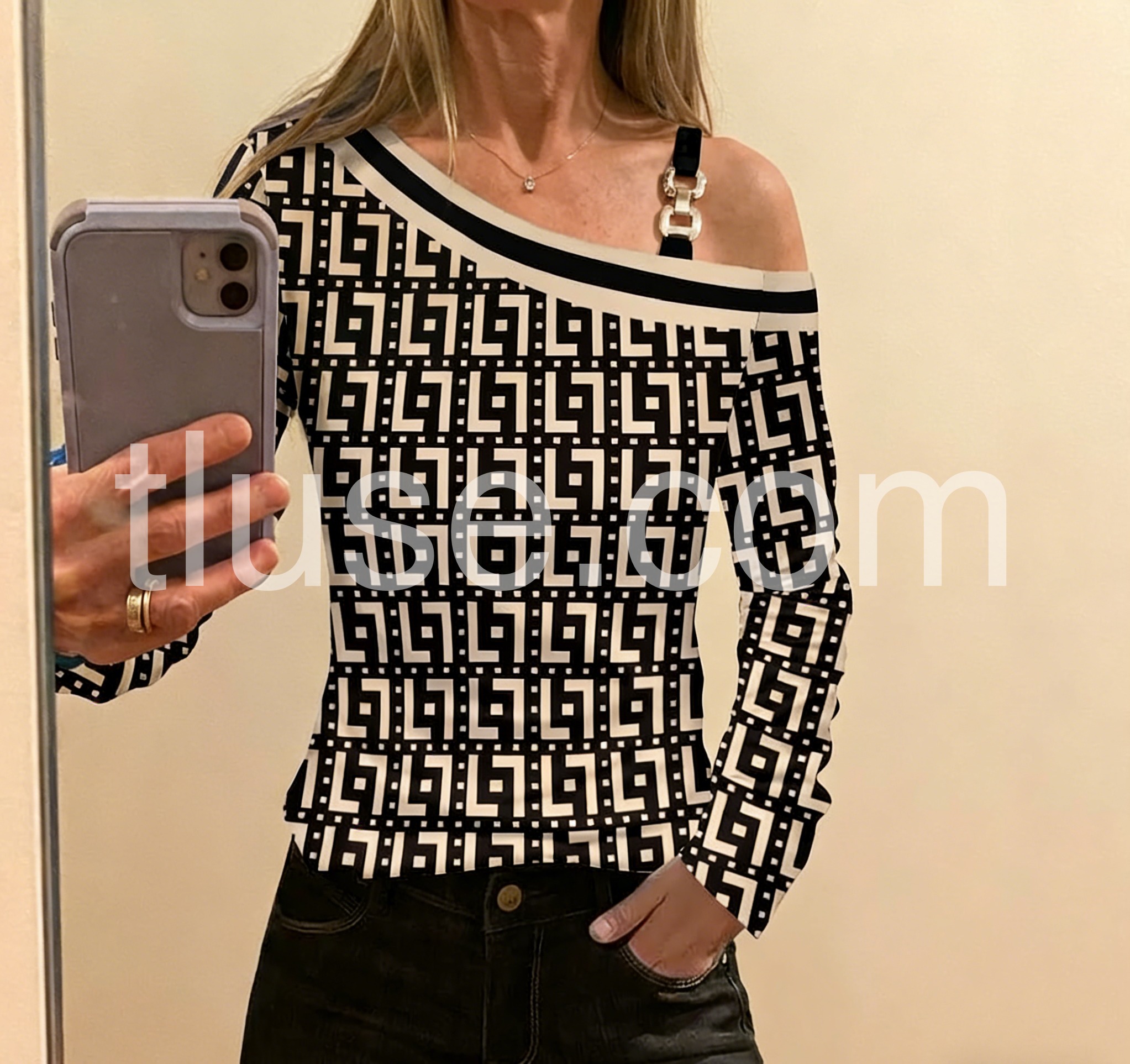 Introducing the Retro Print Cold Shoulder Top! This stylish piece will add a touch of vintage detail to any wardrobe. Crafted with high-quality fabric, it features a retro print and cold shoulder cutouts to create a timeless and unique look.