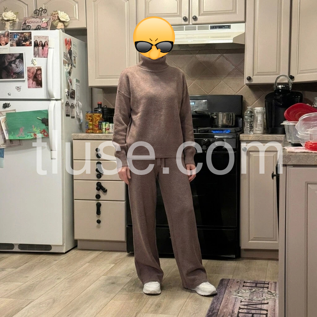 Ultra-chic yet effortless, this knit set takes loungewear to a new level. As comfortable as pajamas, the monocolor two-piece looks like it was pulled straight from the runway. The laid-back glam style features a sweater with a ribbed turtleneck and dropped shoulders and drawstring pants with a gently flared leg.