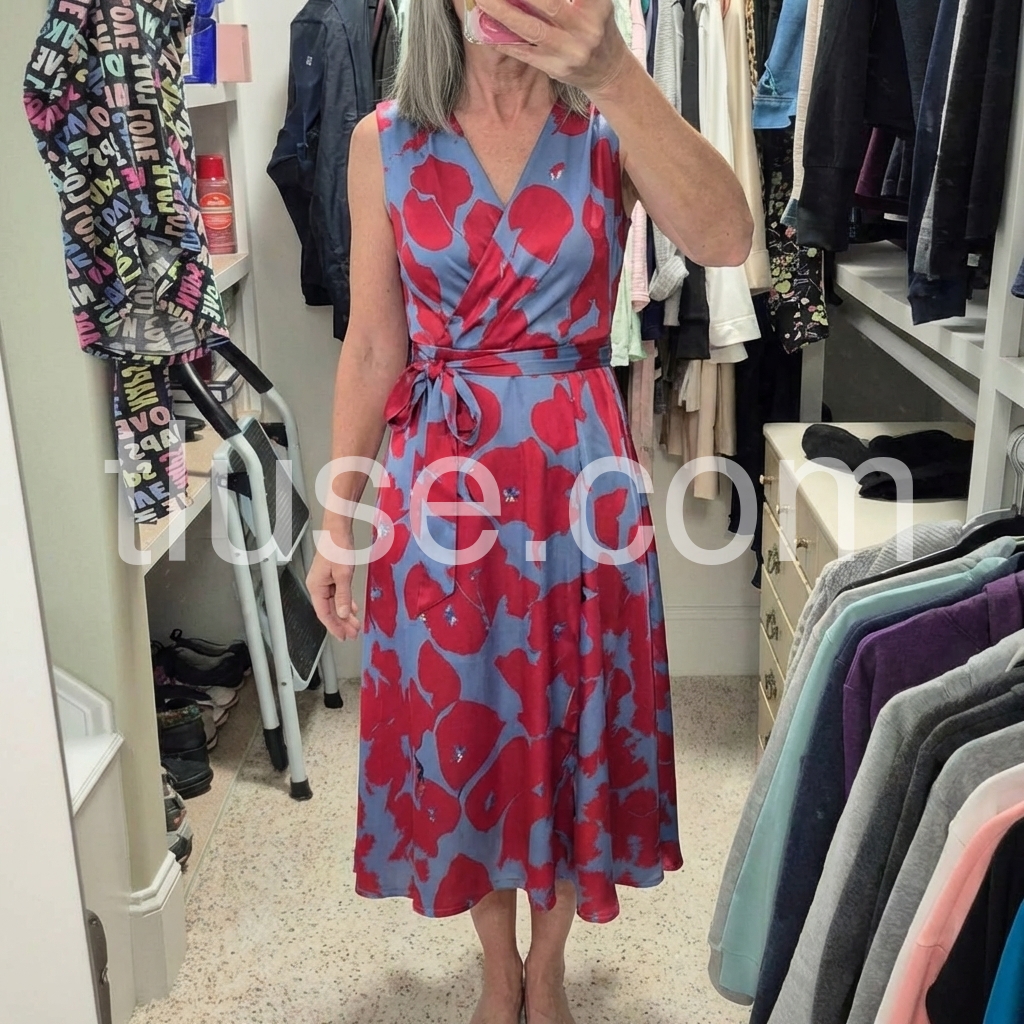 Elevate your wardrobe with this sophisticated floral print midi dress. The sleeveless design offers versatility for layering while the elegant silhouette flatters your figure. Crafted with attention to detail, this dress transitions effortlessly from professional settings to evening occasions. The timeless floral pattern adds a refined touch to this essential wardrobe investment.