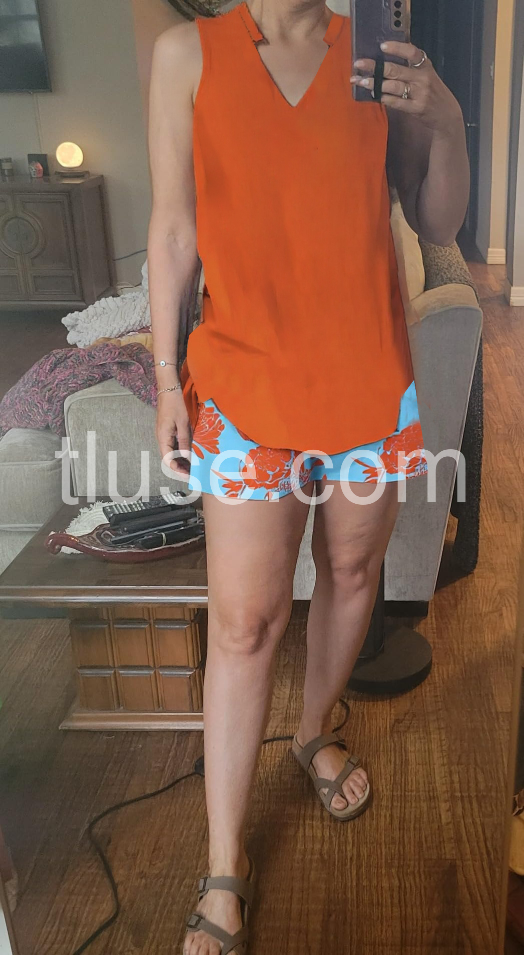 Take your style to bold, new heights with this orange sleeveless print two-piece set! This sleek and daring look is perfect for rising to any challenge. Make a statement with this ultra-flattering two-piece!