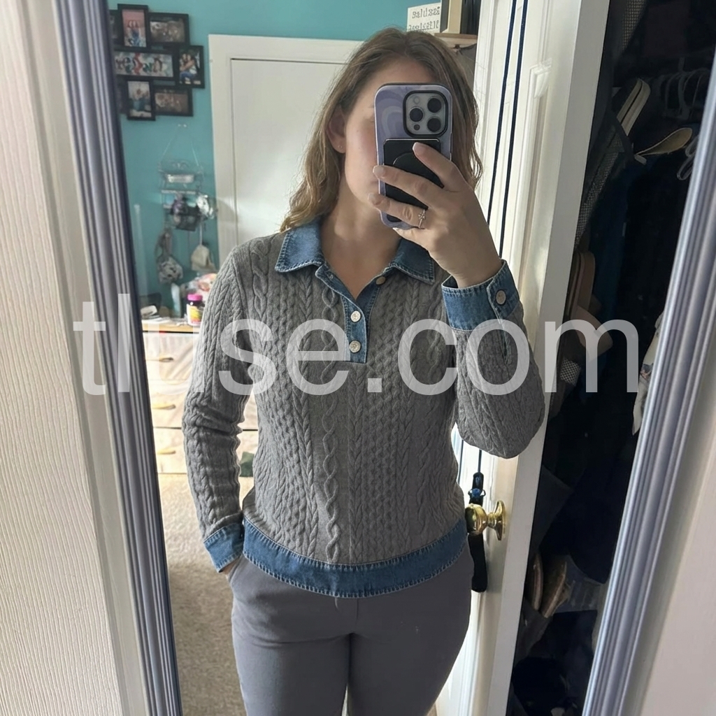 Elevate your casual wardrobe with this sophisticated grey cable knit sweater, featuring a distinctive denim collar that bridges classic and contemporary style. The intricate cable pattern adds textural depth and visual interest, while the long sleeves provide warmth and versatility for layering. Crafted with attention to detail, this piece transitions seamlessly from weekend wear to smart-casual settings, offering the comfort of premium knitwear with refined aesthetic appeal.